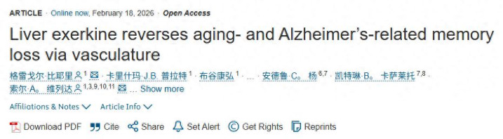 Bieri, G., Pratt, K. J. B., Fuseya, Y. et al. Liver exercise reverses aging- and Alzheimer's-related memory loss via vasculature. Cell189, 1-18 (2026). https://doi.org/10.1016/j.cell.2026.01.024